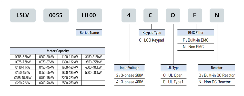 | 모델명 LSLV H100-4 | 0055 | 0075 | 0110 | 0150 | 0185 | 0220 | |
